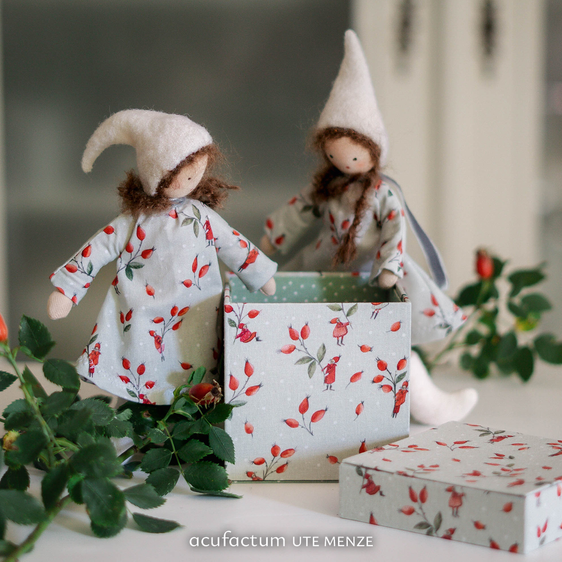 Die kleinen Elfen möchten uns mit ihren Hagebuttenzweigen ein Lächeln aufs Gesicht zaubern. Bei mir hat das gut geklappt ;)