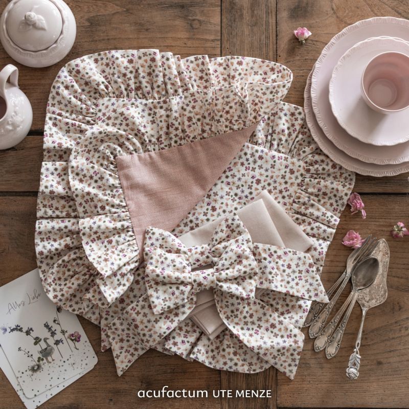 Kleine Blütenromantik eignet sich wunderbar für Näharbeiten, die Leichtigkeit und Wärme in den Wohnraum bringen. Kissen, Täschchen, Accessoires oder feine Dekorationen erhalten mit diesem Allover eine natürliche, feminine und zugleich zeitlos elegante Note.