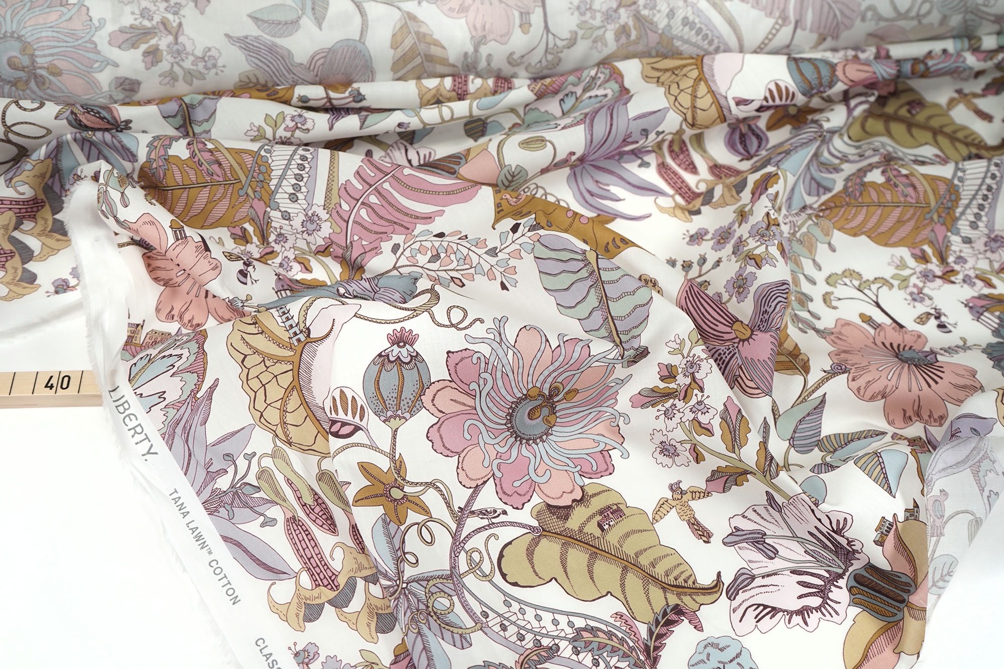 Tana Lawn™ Cotton ist ein unvergleichlich zarter, feiner und leichter Baumwollstoff von Liberty Fabrics. Der luxuriöse Baumwollbatist hat ein fast seidenartiges Aussehen und einen seidenähnlichen Griff. Die einzigartig feine Qualität des Gewebes wird noch unterstrichen von den brillanten, intensiven Farben und den äußerst geschmackvollen Drucken.